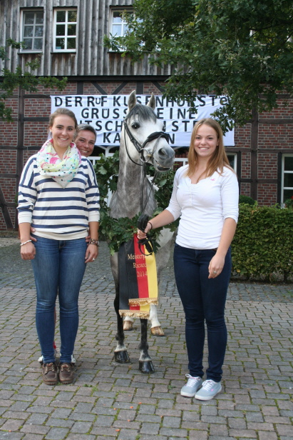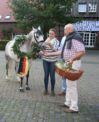 Erster M - Sieg für Karolin Schettler Mit ihren erst 15 Jahren konnte Karolin Schettler am 24. August 2013 in Altenberge ihre erste M-Prüfung für Pony-Einspänner gewinnen. Gegen starke Konkurrenz auch aus dem Erwachsenen-Lager beendete sie die anspruchsvolle Geländeprüfung mit ihrem westfälischen Schimmelpony Ricardo von Oosteind's Ricci - Niklas ( Züchter: Annette Lembeck, Stadtlohn ) in der schnellsten Zeit.