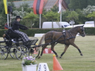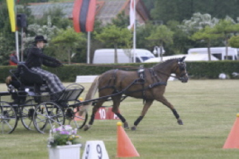 | Karolin Schettler Westfalen - Meisterin Fahren U 21 Beim diesjährigen Fahrturnier der Fahrfreunde Ostenfelde wurde das Westfälische Nachwuchs-Championat Fahren U 21 ausgetragen. Anders als auf Bundesebene, wo die Junioren in die Altersgruppen bis 16 und 17 - 21 Jahre aufgeteilt sind, konkurrieren in Westfalen alle Junioren in einer Altersgruppe, jedoch in verschiedenen Anspannungsarten. Die stärkste Gruppe ist stets die Klasse der Pony-Einspänner. In diesem Klassement setzte sich die Kusenhorster Fahrerin Karolin Schettler mit ihrem westfälischen Schimmelpony Ricardo gleich in der Dressurprüfung an die Spitze, gewann das Kegelfahren und ließ im Gelände nichts mehr anbrennen und kam mit der drittschnellsten Zeit ins Ziel. Mit dem Gesamtsieg in der Kombinierten Prüfung ( auch gegen Erwachsene) fuhr sie zugleich auch ihren ersten Titel ein: westfälische Junioren-Meisterin 2013. Lars Schlüter, ebenfalls für die Reit-und Fahrfreunde Kusenhorst am Start, verpasste als Vierter mit seinem Ponyhengst Noctambule nur ganz knapp eine Medaille und wurde mit seiner holländischen Welsh B - Stute Mandy noch Siebter. | ![]() |